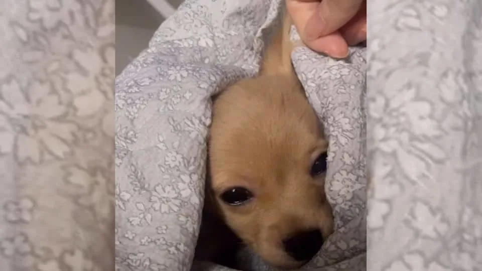 Tiny Puppy Found Shivering On The Street Finally Feels Safe In Loving Arms