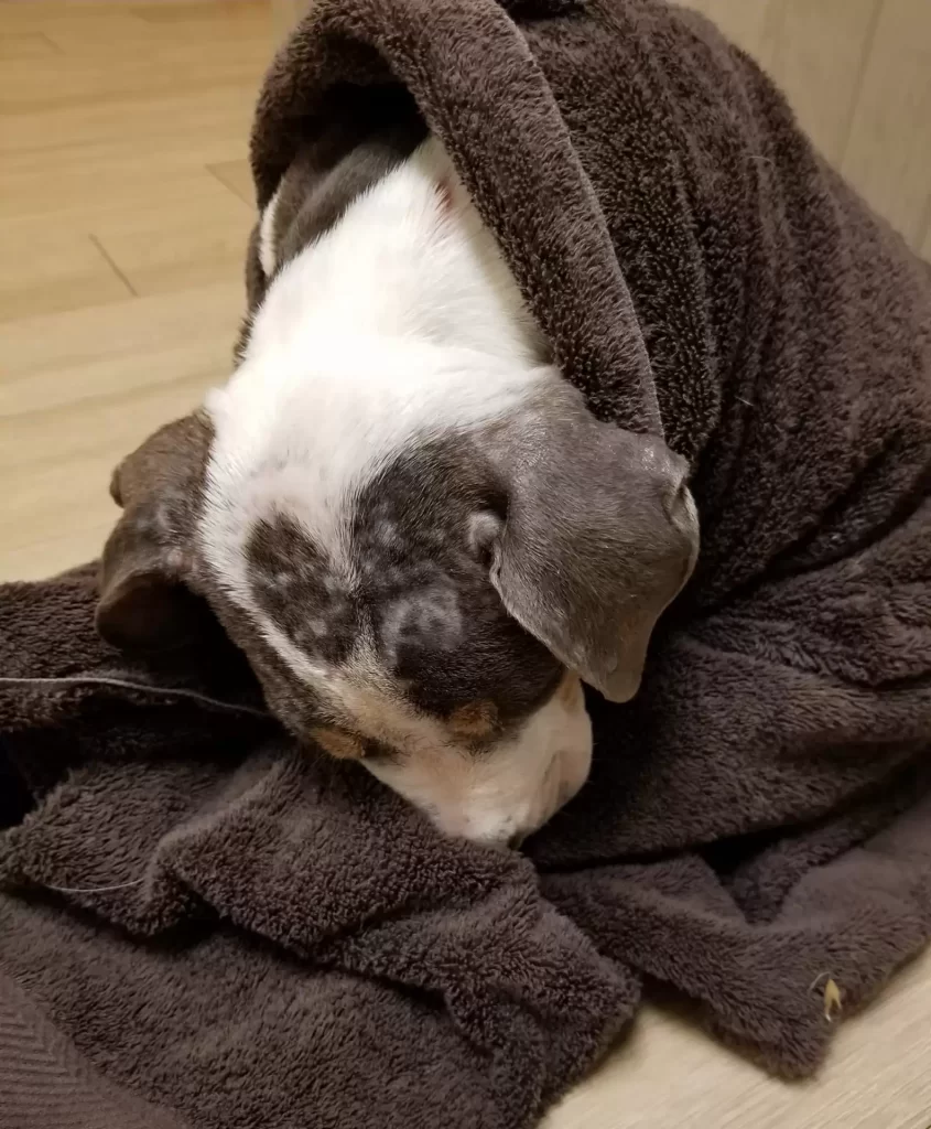 His back legs didn’t move the way they should, and his tiny body carried wounds that spoke of suffering no puppy should ever endure.