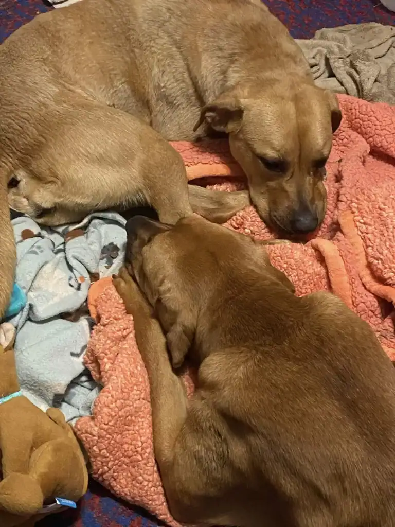 When Layla and Lola walked into their foster home for the first time, it was almost as if they exhaled. They explored gently, wagging at their new humans, then circling back to each other for reassurance. It didn’t take long before they were curled up on a soft bed, resting peacefully for the first time in weeks.