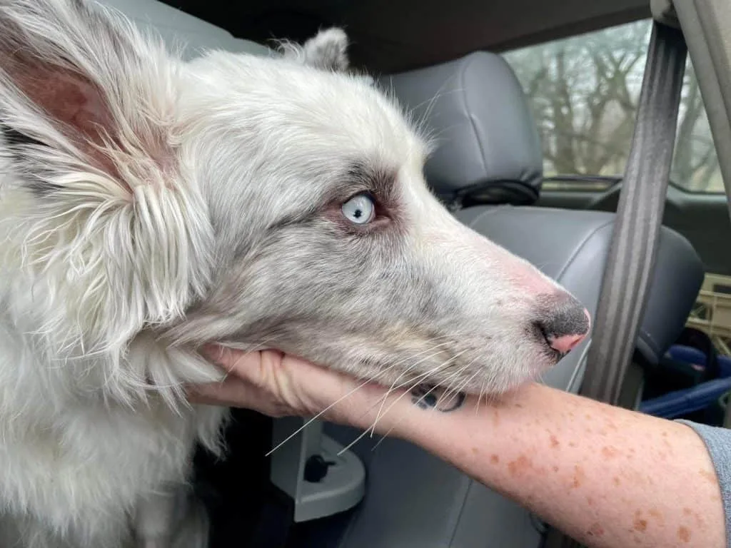 She smiled as Joey nuzzled her hand, full of trust and peace.