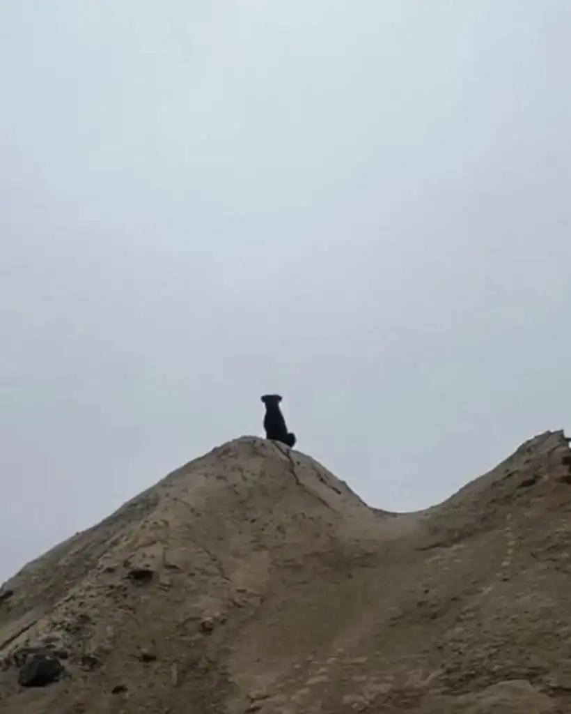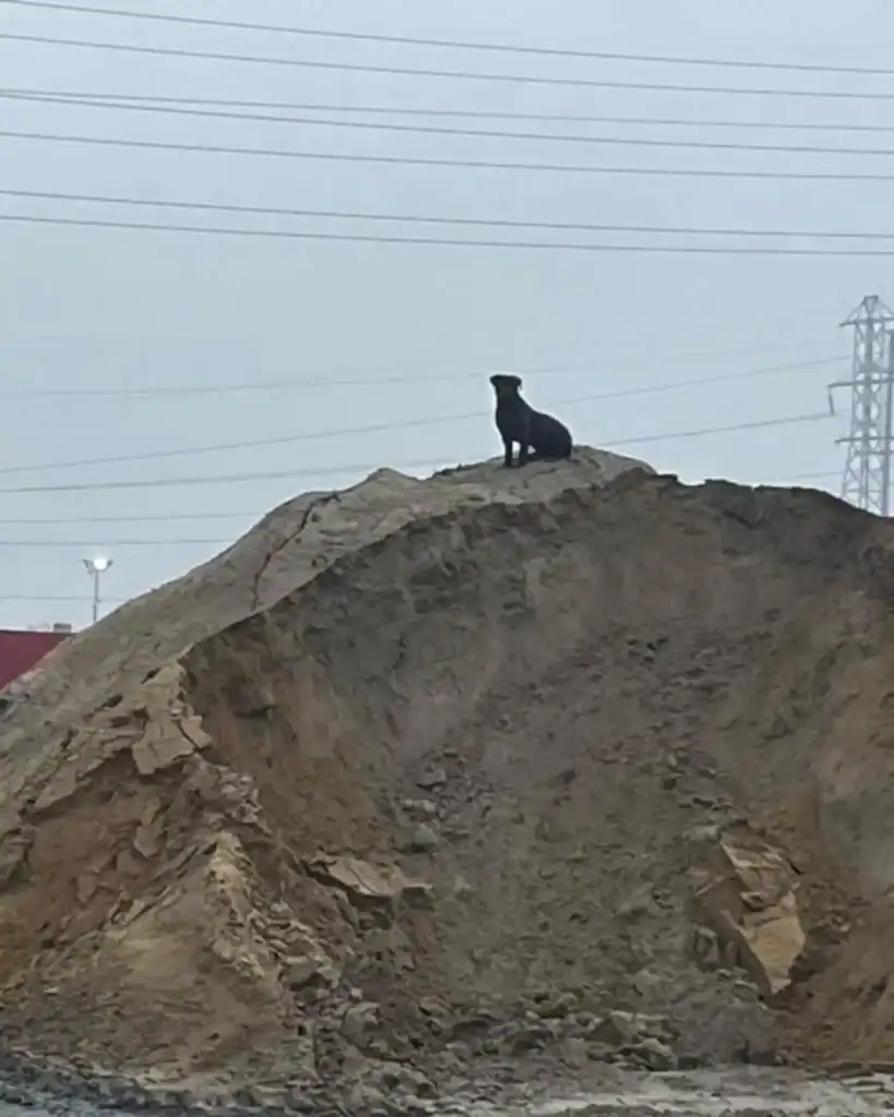 She stood on the edge of the dirt pile, tall and still, watching the humans from far away.